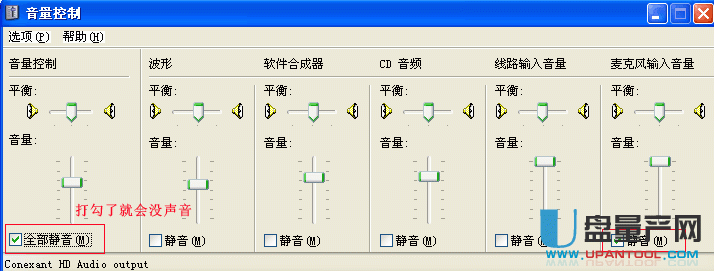 发现电脑没有声音时,第一步先看看右下角的小喇叭还存在否。如果不存在。重启电脑后出现小喇叭,右击小喇叭---打开音量控制---主音量 查看左下角“全部静音”是否被打勾了。取消打勾,就能正常发出声音。如果重启电脑后,还是不出现小喇叭。进行第二步:打开“开始 --设置---控制面板----声音、语音和音频设备---音量---设备音量--将音量图标放入任务栏(将前面的框框打“√”)”。PS:如果前面的打 不了“√”,可以判断出是电脑没有音频设备或者不存在音量控制程序。