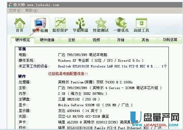 步骤2.如 下图所示,点击“首页”右边的“硬件检测”,软件便可自动检测并显示你的电脑硬件信息(“声卡”的型号也在其中)。PS:另一种查 看声卡驱动的方法:开 始 -- 运行-- 输入:dxdiag命令--确定就可以打开Direct X硬件诊断工具,之后选择 声音就可以看到声卡型号了