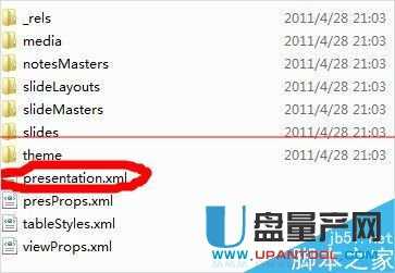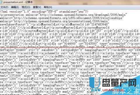 3、接着,打开解压好的文件夹,进入到图片提示的地方,用记事本打开Presentation.xml这个文件;