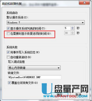 4、 将“在需要时显示恢复现象的时间”一项前面的勾选项去掉。