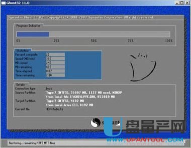 7、这时,电脑就会进行系统重装,你只需要耐心等待就可以了。重装画面如图: