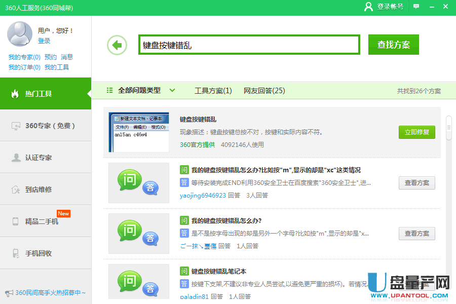 然后再查找里输入:“键盘按键错乱”,点击“查找方案”