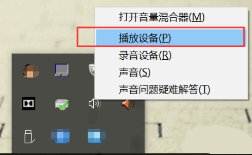 情况二、如果不是静音导致的没声音,那么我们点击这个喇叭图标右键点,在菜单里点播放设备,如下图