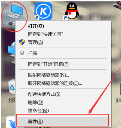1、点桌面上的此电脑图标右键,然后点击属性,如下图